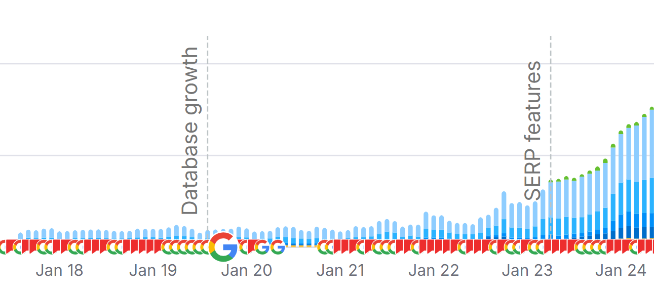 - Keywords in positions beyond 10 expanded by 118%, from 9,165 to 20,000.