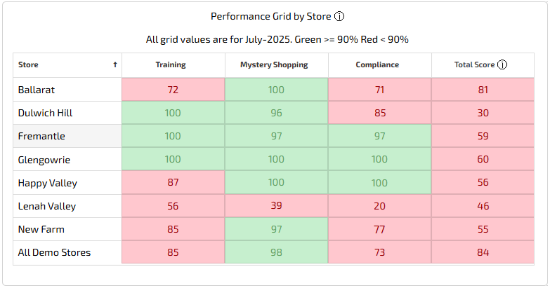At the centre is a hub connecting training, checklists, compliance, mystery shopping, and performance reporting. Store teams see exactly what to do next, leaders see where to coach, and executives see which levers drive sales, margin, and experience. The dashboard gives a single view of standards, skills, and KPIs, making it simple to course‑correct quickly and scale what works.