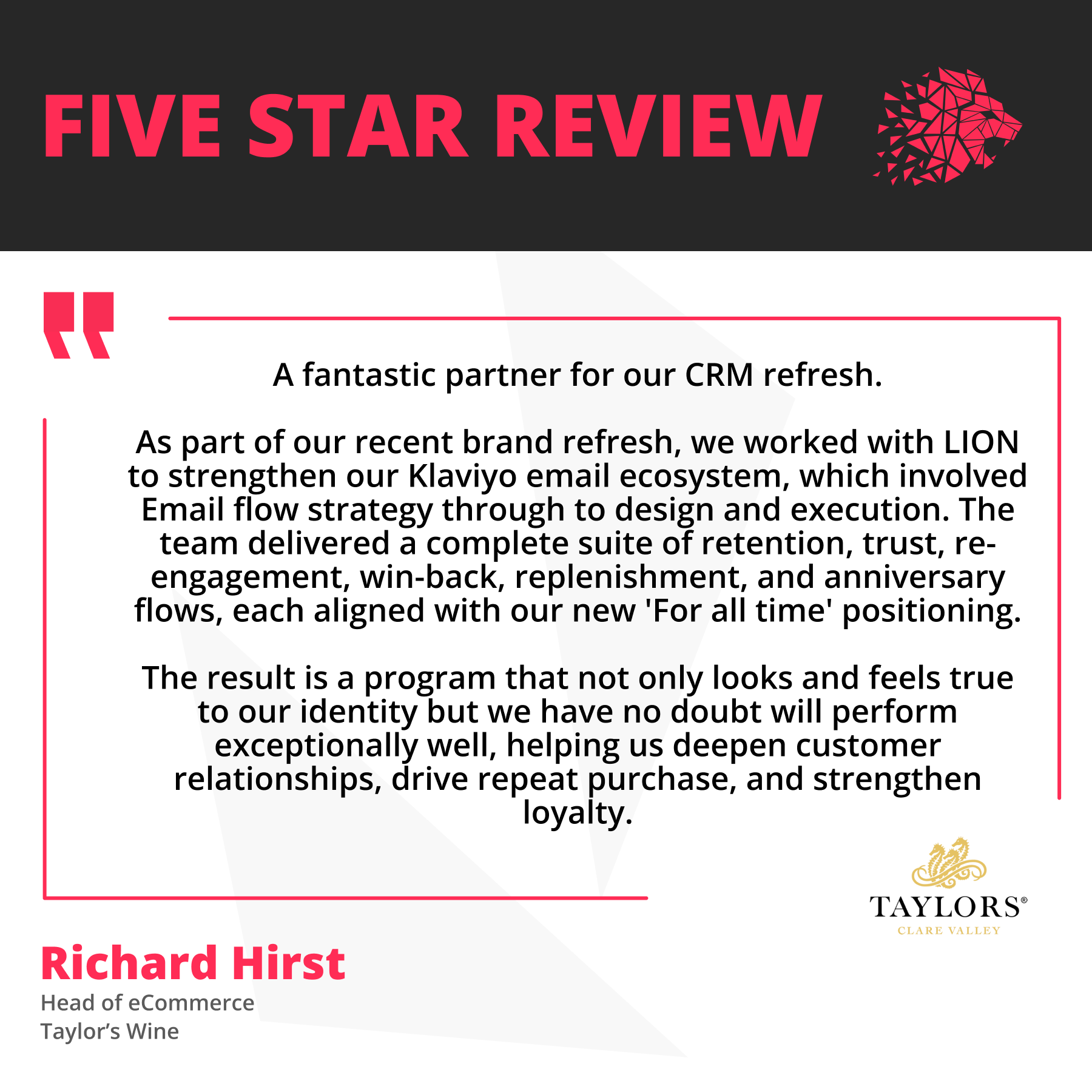 Struggling to make email marketing work for your business? As a Klaviyo Elite Partner, LION’s Klaviyo Growth Accelerator sets up your account for success, helping you capture more leads, recover abandoned sales, and drive repeat purchases.